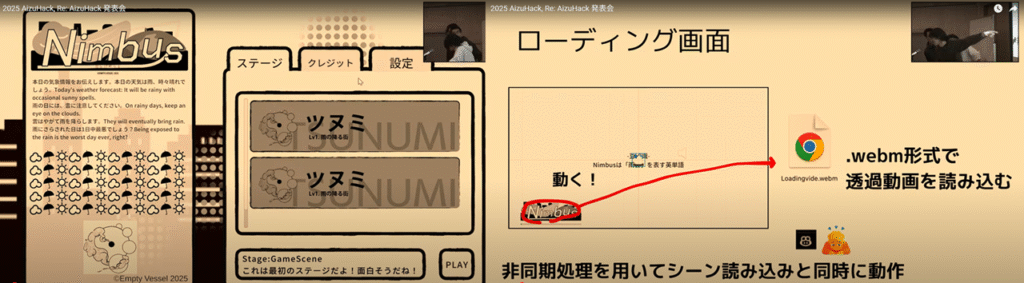 デザインも細部までこだわっていて、メニューからゲームオーバーまで世界観がしっかり統一されていました。また、WebMを使うなど、動画の活用も行なっていた点も注目でした。