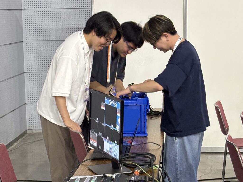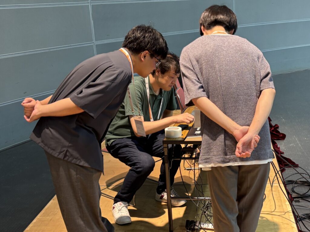 今回のライブ現場には、有志学生3名が参加し、機器の接続方法や配信の仕組みを学びながら、ライブシステムの構築・運用を実践しました。